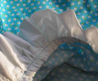 I fixed the shortness by adding a ruffle on the bottom from the white cotton. I took a 6” strip, folded it in half and ironed, then gathered it and sewed it on the bottom.